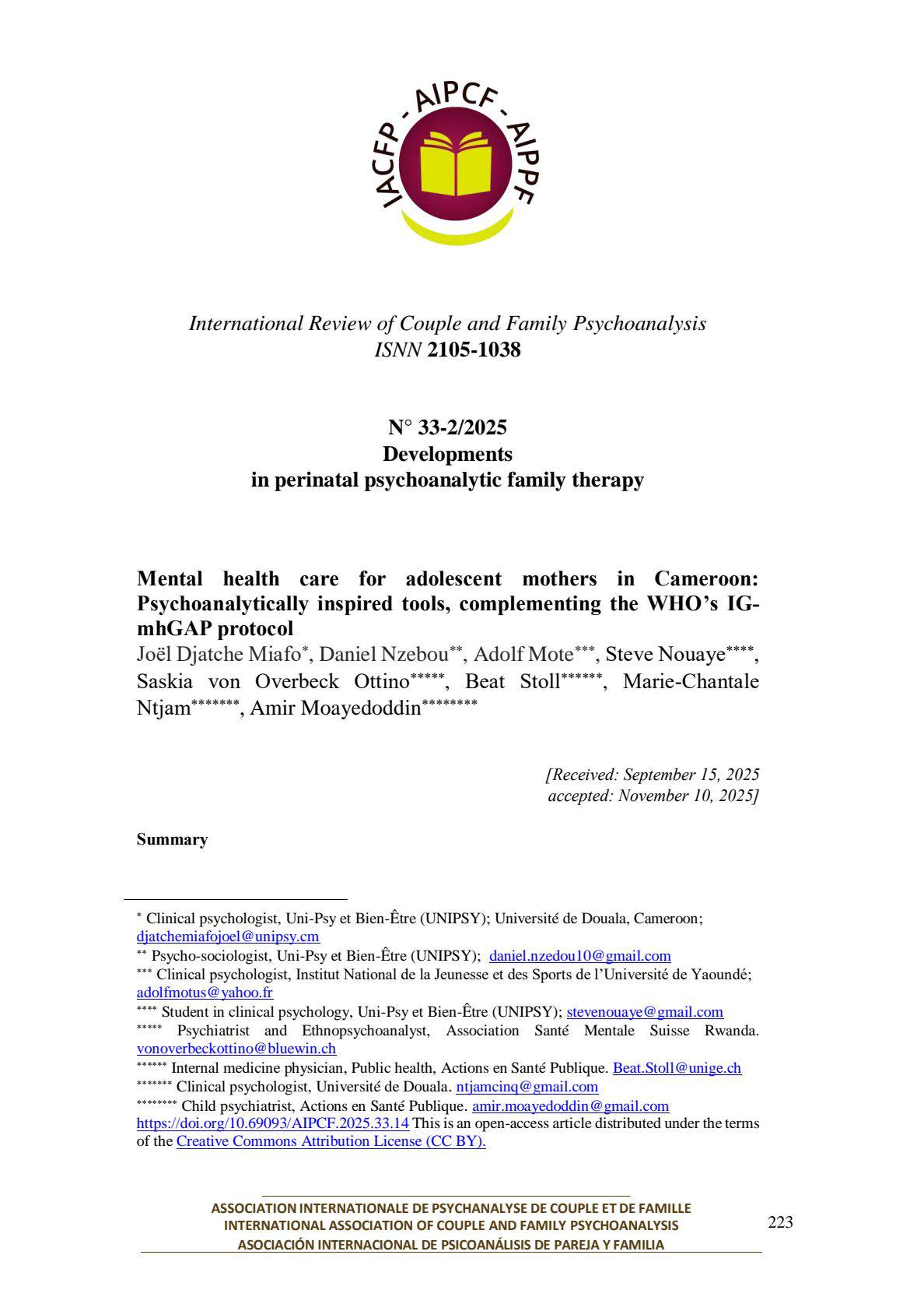 « Les besoins dans le domaine de la santé mentale, tant au Cameroun que dans d’autres pays similaires, nous ont profondément frappés. Nous avons observé un écart entre les besoins, la demande et l’offre de service, en santé mentale. Habités par un idéal de société où tous les citoyens sont en « bonne santé mentale », nous avons décidé de poser une action qui participerait ou contribuerait à la construction de cet horizon teinté d’un bien-être suffisamment satisfaisant. En fait, nous sommes convaincus que l’épanouissement individuel est indissociable du développement et bon fonctionnement de la communauté, qui à leur tour reposent en partie sur une « bonne santé mentale ». C’est fort de ces constats, que la création d’une organisation ayant pour but de promouvoir, de contribuer à l’offre des services de qualité en santé mentale et en psychologie, s’est donc imposé à nous comme une évidence… »