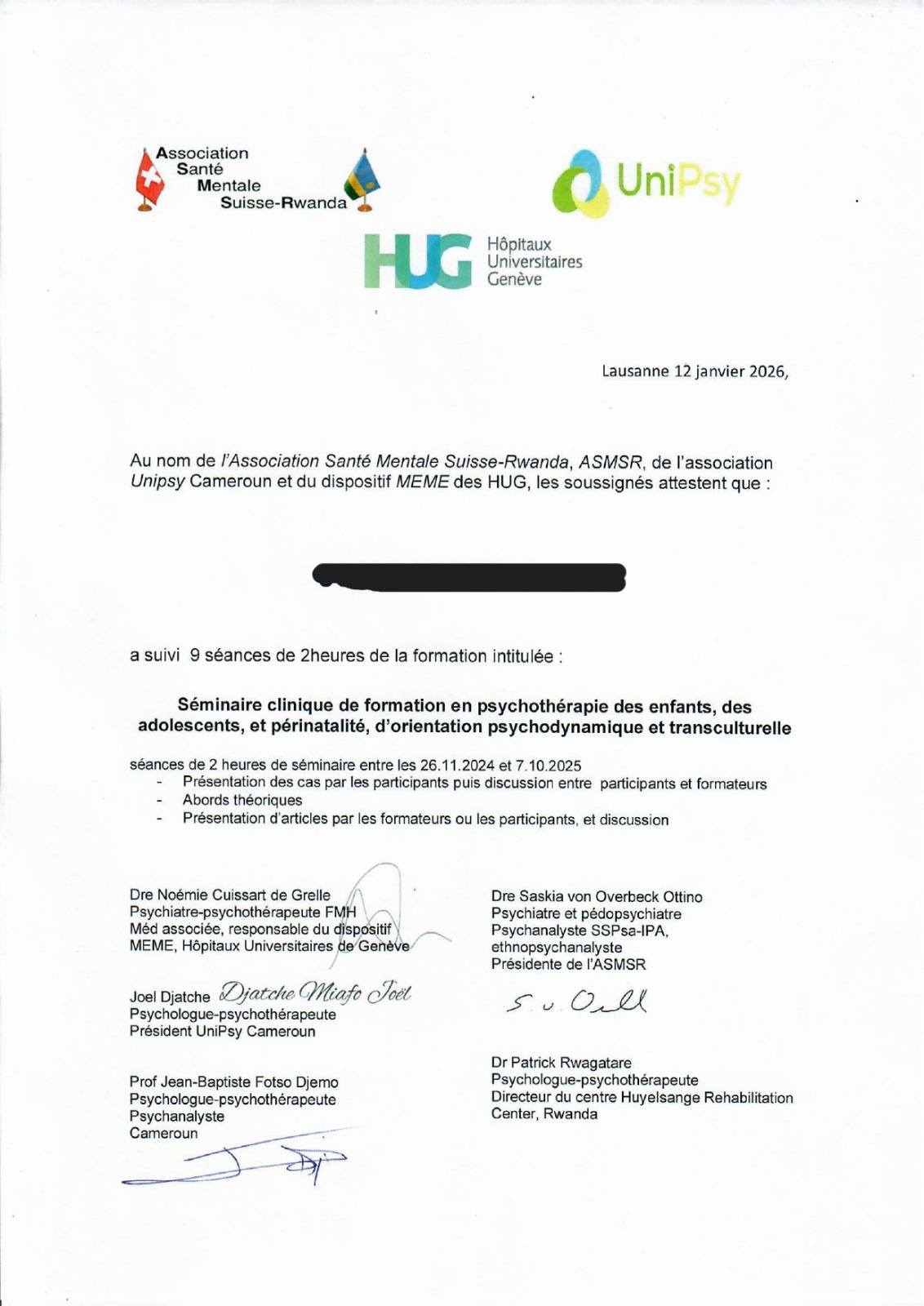 The organization's headquarters are located at Rail-Ngousso, Montée Santa-Barbara, APP dry cleaning building, 2nd floor, door B3. Tel : +237 671 820 131 ; Facebook : UNIPSY ;